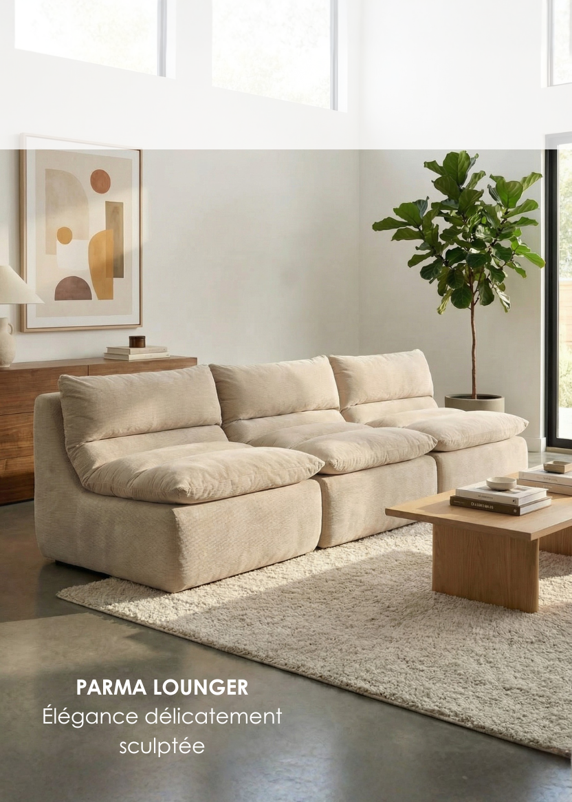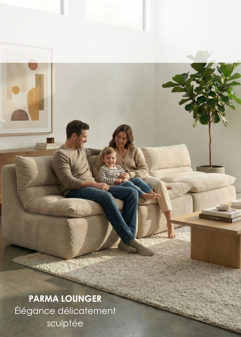 Détendez-vous à votre façon avec notre collection de modulaires adaptables et de loungers ultra confortables. Conçue pour allier confort et polyvalence, chaque pièce vous permet de mélanger, d’agencer et de vous relaxer avec style — que vous soyez seul(e) pour vous étendre ou entouré(e) d’amis.