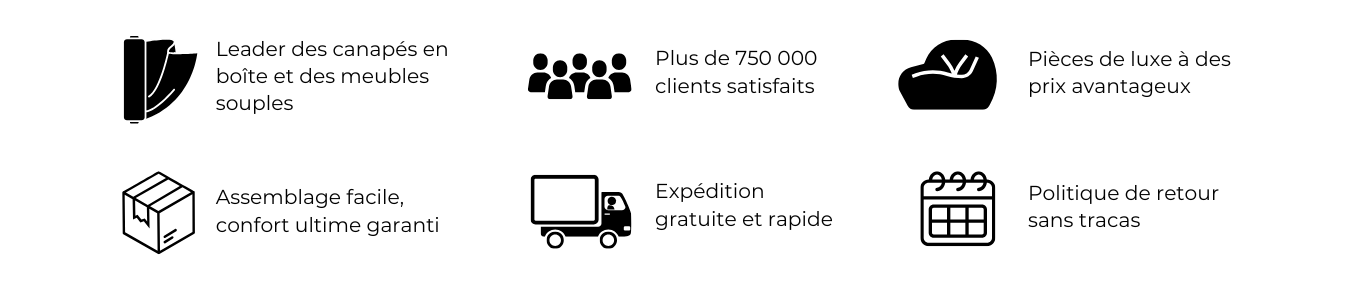 Bien plus que de simples poufs et beanbags. Laissez-vous être fasciné par notre vaste gamme élégante et moderne de beanbags. Pas question de compromettre la qualité, c'est pourquoi nous vous offrons différentes couleurs, des formes uniques et des choix de matériaux confortables.